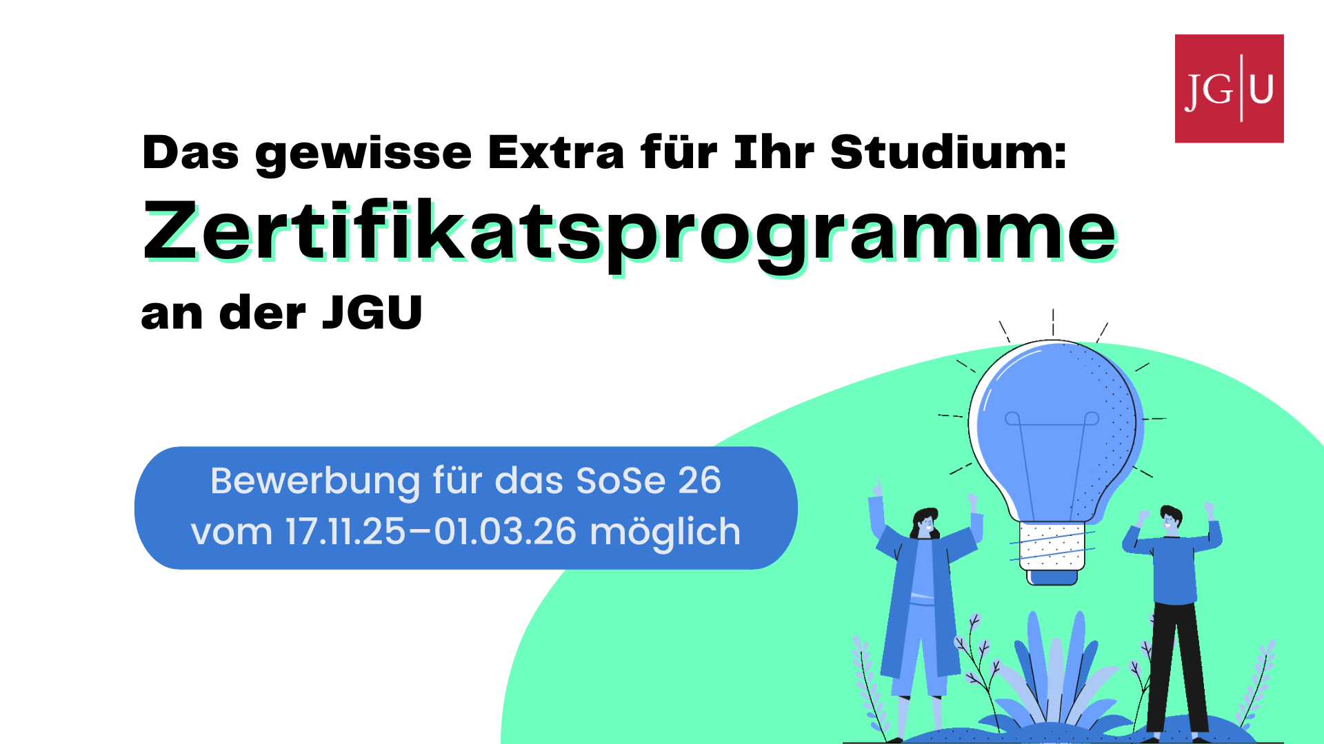 Ab dem Sommersemester 2026 bietet die JGU zwei neue, spannende Zertifikatsprogramme an. Beide Zertifikate stehen einem Großteil der Studierenden an der JGU zur Verfügung!